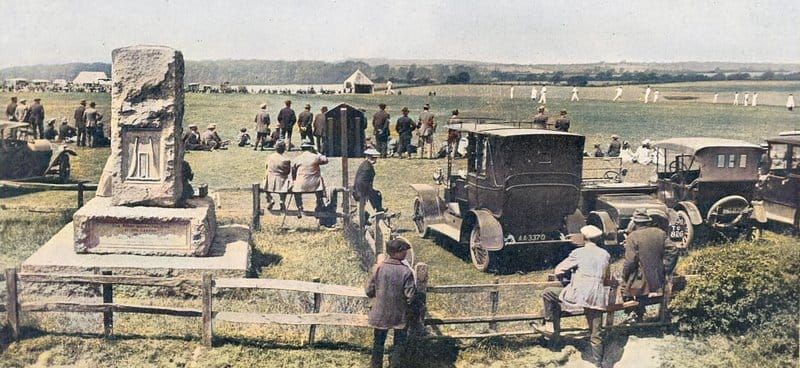 A turning point was the research of E.V. Lucas and his publication of The Hambledon Men in 1907. Interest in the great deeds of Hambledon’s famous cricketers was stirred, and moves were made to erect a memorial stone. The great English cricketer, all-round sportsman, and would-be King of Albania, C B Fry, became involved. In 1908, a three-day match between a Hambledon XII, which included Fry, and an All England XII, captained by the legendary G. L. Jessop, was played from 10th to 12th September; during this game, the memorial stone was unveiled; cricket had returned.