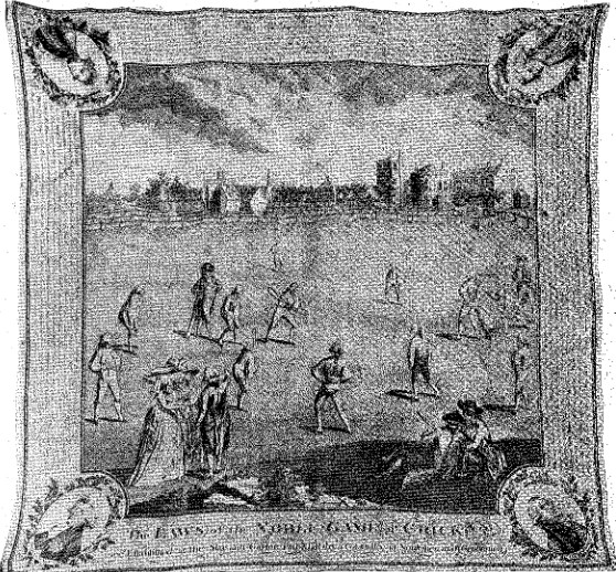 1785 – Handkerchief of the Laws of Cricket, with a game at White Conduit Fields